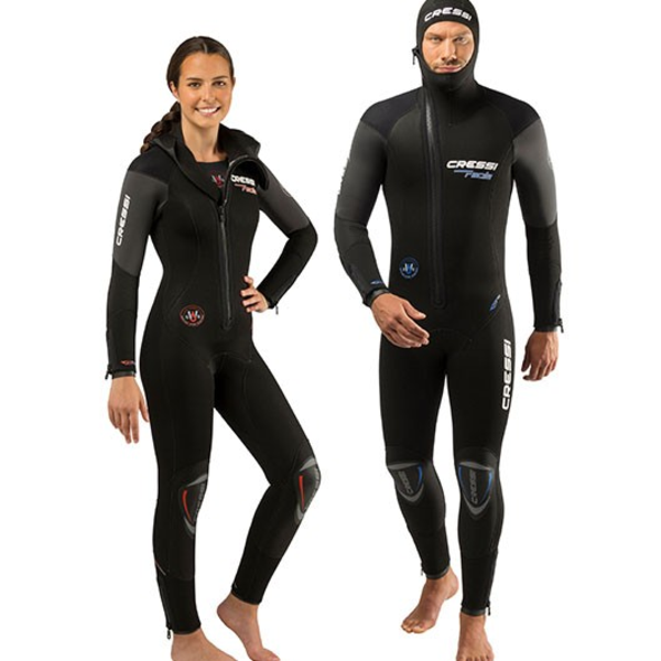 Um das Eindringen von Wasser durch den Front-Reißverschluss zu reduzieren, kommt das System Cressi WSS® (Water Stop System) zum Einsatz: ein auf der Innenseite des Anzugs befestigter Brusteinsatz aus 3 mm dünnem Neopren.