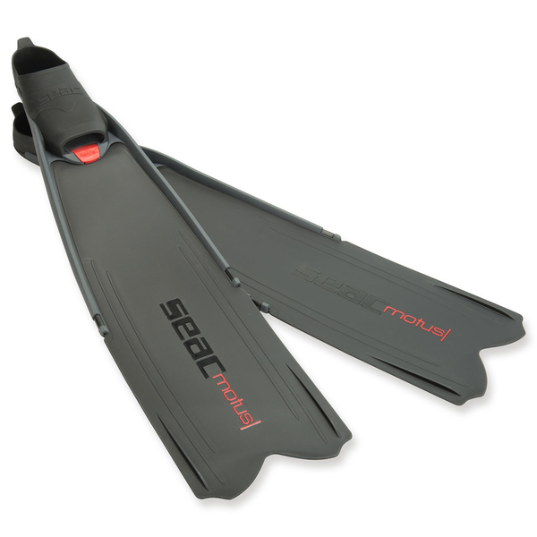 Die Motus Flosse von Seac hat ein geschlossenes Fussteil aus zwei verschiedenen Materialien, welche unterschiedliche Stärken besitzen. Die Sohle und Rippen bestehen aus hartem Thermoplastgummi, hingegen die Passform ist weich, um das Komfort-/Leistungsverhältnis zu optimieren. Das Flossenblatt kann ausgewechselt werden.